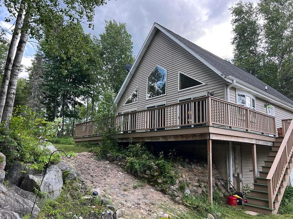Welcome to your dream getaway! Come see this beautiful Northwoods chalet located on 27 acres with two streams and access to Balls Lake. The main floor offers an open concept kitchen, dining and living room allowing for a generous gathering area and features cathedral ceilings, tongue/groove paneling, and a wood burning fireplace. Three patio doors lead to a large deck giving the perfect spot for outdoor living. Two bedrooms and a large full bath finish off the main floor. An open staircase in the living room leads to a loft with unlimited possibilities of a 3rd bedroom, rec space or office. The lower level has a beautifully finished family room, utility room and a 1.5 stall garage. It’s common to spot wildlife when cruising the property including deer. The property is located near restaurants, convenience stores and lakes along with direct access to ATV and snowmobile trails and near Nicolet National Forest. The Railroad tracks are no longer in use. Come see this great property!