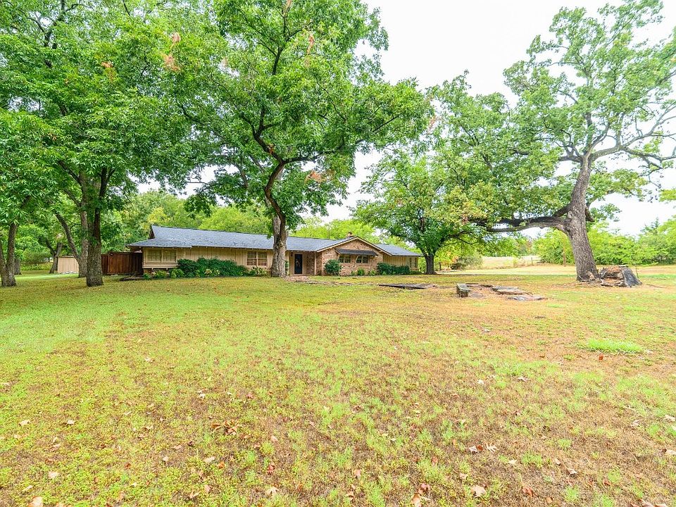 Single story home with majestic mature oak trees located just minutes west of Highway 75 (Central Expressway). Location is an easy drive to the metroplex. New roof 2021. Neutral colors. Oversized living room with windows on 2 sides, large brick fireplace with insert with blower, shelves and cabinets. Split floorplan. Master suite has sitting area and his and her walk-in closets. Large diving pool. Pool house with half bath. Large metal workshop and storage.