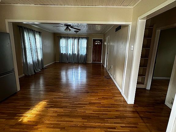 1014 sq. feet with 2 bedrooms and 1 bathroom with an extra room perfect for craft/hobby room or maybe a nursery. Open living, dining, kitchen area featuring beautiful cabinets and newer countertops. All appliances stay and are less than 3 years old including washer and dryer. The bathroom has been refreshed and has a newer vanity and plumbing fixtures. Heading out the backdoor you find the utility room with laundry area and pantry cabinets; room for 2nd refrigerator or freezer.