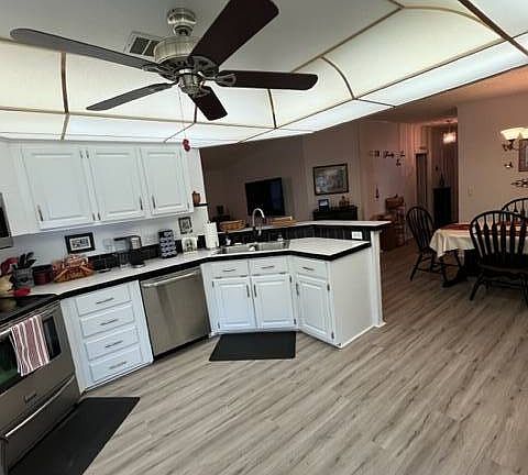 Step into your dream home! This stunning residence has been beautifully updated and is priced to sell quickly, making it a must-see for discerning buyers. As you enter, you'll be greeted by stylish laminated floors that flow seamlessly throughout the entire space, creating a warm and inviting atmosphere. The heart of the home is a modern kitchen equipped with brand-new appliances, abundant cabinetry, and generous counter space - perfect for culinary enthusiasts and entertaining guests. The open-concept living and dining areas boast an airy feel, enhanced by natural light and tasteful ceiling fans, making it an ideal space for gatherings or quiet evenings at home. Retreat to the impressive master suite, featuring a spacious walk-in closet and a luxurious private bath that promises relaxation and comfort. The additional bedrooms are equally spacious, ensuring plenty of room for family or guests. Convenience is at your fingertips with a separate laundry room that includes a new washer and dryer, making chores a breeze. Need an extra space for work or relaxation? You'll love the versatile bonus room, perfect for a den, office, or playroom! Step outside to your finished lanai, where serene views of the golf course, pond, and surrounding woods await. Imagine sipping your morning coffee or hosting evening barbecues in this oasis of tranquility. This home is all about extras! From the wide double carport with an elegantly painted driveway to a large shed for ample storage, a dedicated workshop, and even machine cabinets - every detail has been thought of. Plus, it comes with a top-of-the-line golf cart, making it easy to explore the community and enjoy the beautiful surroundings. This turnkey property is just waiting for your personal touches to transform into your perfect sanctuary. Don't miss out on this fantastic opportunity; schedule your showing today and see for yourself why this home is a true gem in The Hamptons Golf Community! "While all information is considered reliable, we encourage prospective buyers to conduct their own personal inspections for a comprehensive understanding of the property's condition and measurements. Please note that American Mobile Home Sales of Tampa Bay Inc. cannot guarantee the accuracy of this information. As a buyer, you will be responsible for all closing costs, sales tax, and title transfer fees associated with the purchase. The buyer assumes full responsibility for obtaining all current rates for lot rent, fees, and any pass-on costs, as well as to familiarize yourself with the lease agreement and community regulations. For these details, please reach out to the community or park manager directly. American Mobile Home Sales of Tampa Bay Inc. is not responsible for quoting said fees or policies."