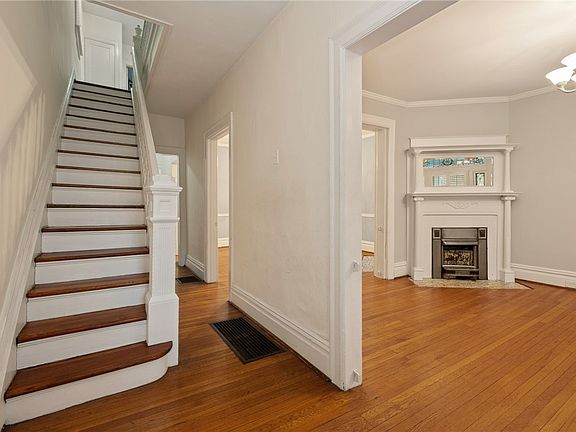 Character and charm! This Victorian home is one of the seven sister homes and is located on a highly desirable street in Edgewood! Within walking distance to C.C. Mellor library and the Edgewood Club pool and tennis courts. The first floor offers a warm and inviting entry with beautiful stained glass, decorative fireplaces, and a butler's pantry. Enjoy your morning coffee on the front porch, or the great back deck. The private, fenced in backyard provides plenty of space to entertain & opens to a public green space. 2nd floor features 3 bright, and well-sized bedrooms. 3rd floor has heat and AC, providing endless possibilities for home office space, child's playroom, multimedia, etc. Many updates including a fully updated bathroom, new kitchen floor, AC (2017), and 150 amp electrical box. Great location: near Frick Park, grocery shopping, restaurants, I-376, and so much more! Welcome home!