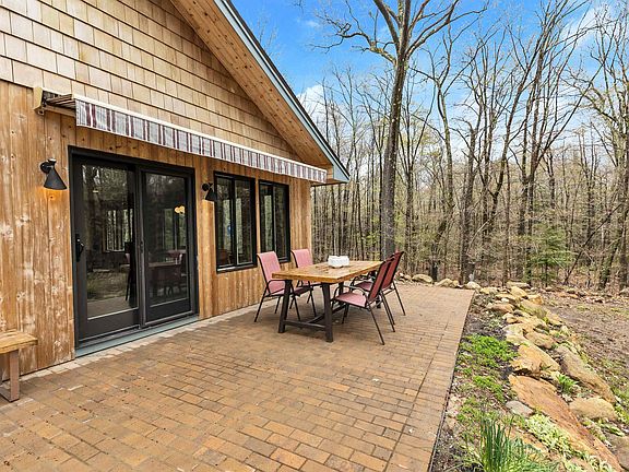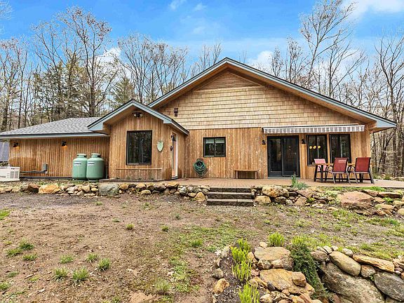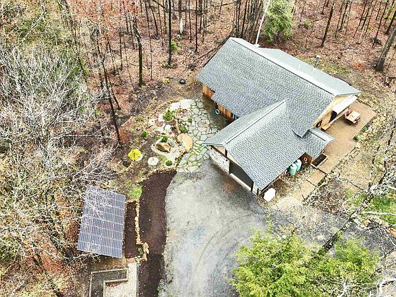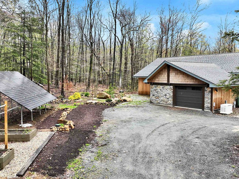 Located in 400 acre Morgan Reserve, with hiking trails, 13 acre private bass pond with swimming platforms, canoes, kayaks & HOA fee of $10/month. No guns/hunting. Abuts Rhododendron State Park, Little Monadnock, and Appalachian Trail. Energy star eligible, built in 2018, 3 bed 2 baths on first floor, 1.5attached garage. Second floor is finishable space, already insulated. Off grid, this home's ground mounted solar leaves only $200/month in total utilities for full time use. Efficient, therapeutic electronic infrared heat under solid porcelain floors throughout. Super insulated: packed cellulose, sprayed foam, thermally isolated slab construction. 22KW Generac Propane back up. Whole house surge protection. Low cost community power and fiber internet this year. Open concept with lovely intimate spaces. Jeld-Wen windows, custom crafted doors, hand rubbed fir trim, designer tiles, huge family kitchen, granite countertops,maple cabinetry. Primary suite w/huge shower,granite and glass accents. Clad in western red cedar. Views draw you out to 360 degrees of mature oaks, maples, and pines. The 30' x 10' brick terrace with retractable awning creates 3 seasons of outdoor entertaining. The screen porch views to endless acres of quiet woodlands, fragrant thyme among the glacial boulders, textures in the rock garden, garden fountain bubbling - Nap central! Outbuildings: 12' x 10' post and beam workshop, 12' x 12' heated hut for studio, gym, etc. Too much greatness to list. Must see!