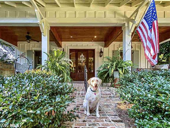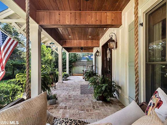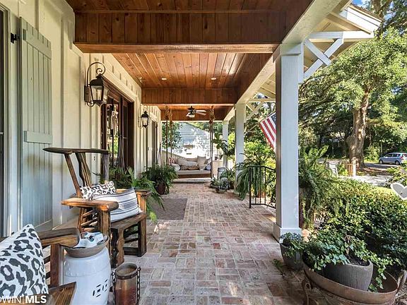Unparalleled beauty and Southern charm perfectly describe this dream home ideally situated among magnificent live oak trees shading a lusciously landscaped lawn. Making everyday life special, this incredible residence is primely located in the sought after Fruit and Nut section of Fairhope within walking distance to sunsets over Mobile Bay, fine dining, art galleries, Mardi Gras parades, and boutique shopping. Passing through an over-sized front porch, you will find premium finishes and fabulous interior design by Sydnee Roberts which features 10 ft. ceilings, Brazilian mahogany flooring and a 42 inch wood burning fireplace. Chef's will enjoy creating and cooking in style in this stunning kitchen that boasts a large butcher block center island custom made from heart of pine reclaimed wood from a cotton mill, quartz counter-tops, stainless steel appliances and separate beverage station. The owner's en-suite is highlighted by the bath's free standing soaking tub, tiled shower, and dual vanities. Ascending upstairs, the second floor is thoughtfully completed with its own den (or home office) and three large bedroom suites. Yes, every bedroom has its own bath! Moving outdoors and progressing through an iron gate, you will enjoy entertaining and dining alfresco by the brick outdoor fireplace and covered patio enveloped in a peaceful fenced-in backyard setting. We invite you to make a showing appointment today.