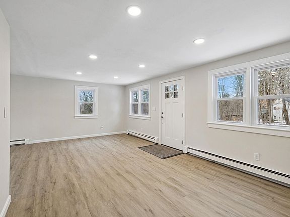 Welcome to this beautifully updated home that combines modern upgrades with timeless charm! Nestled on over 2 acres of lush land, this property offers a perfect blend of comfort, style, and functionality. As you step inside, you’ll be greeted by a bright and inviting open floor plan featuring new vinyl plank flooring throughout and fresh carpet in the bedrooms. The heart of the home is the fully renovated kitchen, which boasts new cabinetry, stunning marble countertops, sleek new appliances, a stylish subway tile backsplash, and open shelving – ideal for both cooking and entertaining. The home also includes a new wall-mounted combi boiler, providing efficient heating and hot water, ensuring comfort year-round. The updated bathroom features a freshly tiled shower and a new vanity, offering a sleek and modern space to unwind. The finished lower level adds valuable living space, perfect for a family room, home office, or additional storage. New lighting throughout adds a fresh, contemporary touch to every room. Step outside to the large deck, a fantastic space for dining, relaxing, or hosting gatherings while enjoying views of the expansive yard. Two outdoor sheds offer ample storage for tools, toys, or equipment. With over 2 acres of land, this property provides endless possibilities for outdoor activities, gardening, or future expansions. This updated gem is ready for you to move in and enjoy – schedule your showing today!