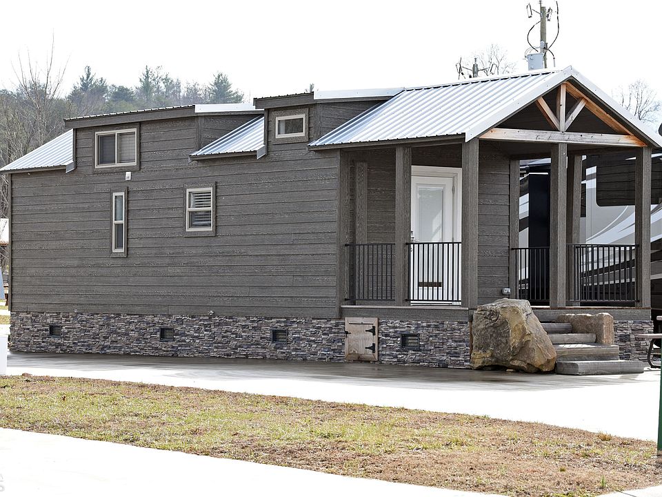 Beautiful lot with views of the community pond and relaxing sounds of a centerpiece fountain in view. Set back and enjoy the cool recreation of camping with style. . Mini split heating and cooling, spacious living room open to the kitchen that provides plenty of room with its own dishwasher, stove, microwave, washer & dryer. Sleeps 8 comfortably. Let your investment keep working for you since you're attracted to the mountains and what's Better than a vacation on wheels? The affordable permanent foundation with the ability to rent it out while you're away with all the luxuries of living, it's camping in style. Amenities that will suit the whole family. Spa, Sauna, Fitness Center, Clubhouse to host parties or attend events; Trout streams for the fisherman; Salt water pool; Tennis & golf, and its own onsite laundry facility! This Great location is less than 5 minutes from Blairsville. Find your retreat at Crossing Creeks RV & Spas.