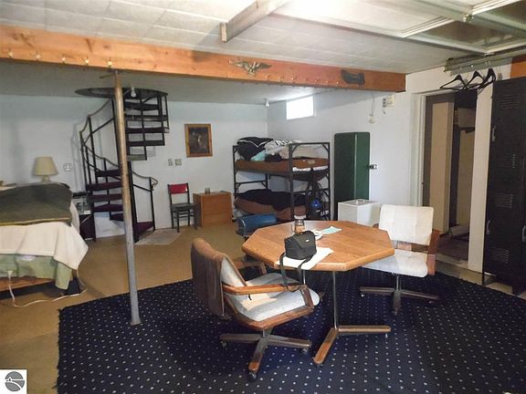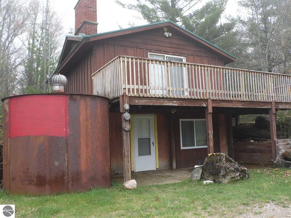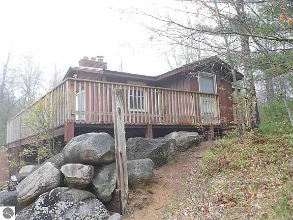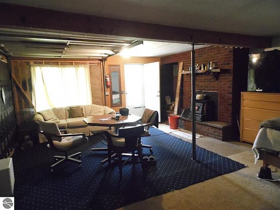 Cozy hunting cabin is basically one room on each level. 2 fireplaces....the one in the lower level has an insert. Great hunting land. Harvested 10-15 years ago. Adjoins public land, not far from Clear Lake and West Branch.