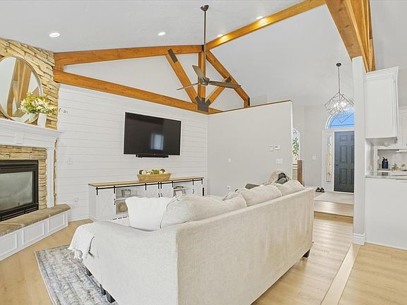 This thoughtfully updated 6 bedroom, 3.5 bath rambler combines modern touches with timeless charm. Step inside to find an inviting main living room with vaulted ceilings and stunning wood beams, complemented by updated flooring, railing and front door that enhance the home's fresh, stylish appeal. The open kitchen and gathering spaces are designed for both comfort and entertaining while the newly added pergola in the backyard provides the perfect spot to relax and take in the breathtaking mountain views. A unique bonus feature: the home's 3rd car garage has been converted into a versatile gym and golf simulation room-ideal for fitness and recreation year-round. Schedule a showing today! Buyer to verify all information.