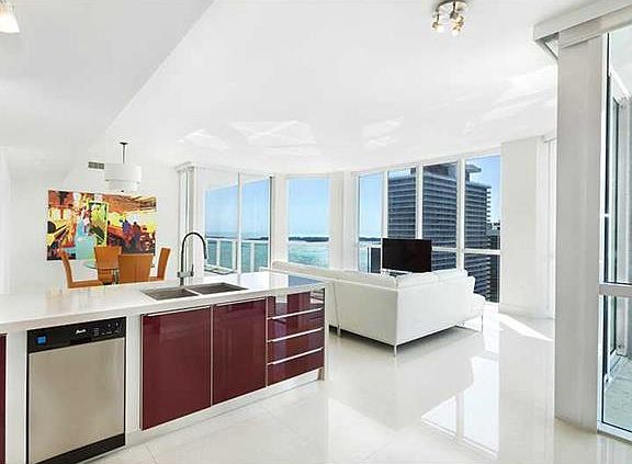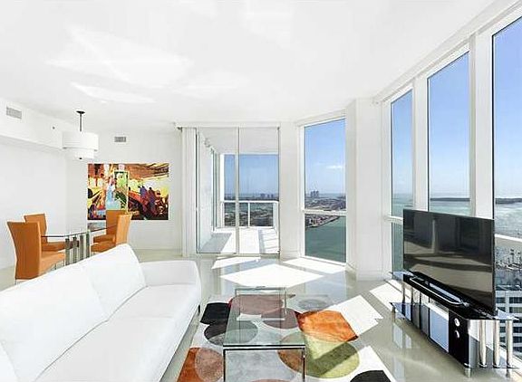 Skyline & bay views from this beauty of floor to ceiling windows. Luxurious Italian tile blanket this gem which includes Italian high gloss cabinets & SS appliances. Open floor plan perfect for entertaining! Custom espresso closets, designer doors & el ectric shades in living & master. Marble floors in contemporary baths & hardwood floors in beds. 5 Star amenities: 24 HR Security, State of the Art Fitness Center, spa, and 4 heated pools. Walk to AAA arena, Bayside, Bayfront Park and more.