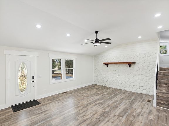 Welcome Home! Nestled on a sprawling nearly 1 acre (.9 acre) level homesite this home includes all-new interior features that transform it into a modern masterpiece. Every inch of this home has been meticulously renovated, resulting in a truly turnkey opportunity. The entire interior has been transformed, from fresh paint and floors to new fixtures. The heart of this home is the state-of-the-art kitchen showcasing brand new stainless steel appliances, sleek quartz countertops, and ample cabinetry. This ranch-style gem offers 3 bedrooms and 2 bathrooms. Every bathroom in this home has been completely reimagined with luxurious tile, modern vanities, and elegant fixtures. Flex/Bonus room above the garage could be the ultimate WFH office or workout space. An attached garage provides secure parking and storage, while energy-efficient windows and a brand-new HVAC system ensure comfort and cost savings year-round.