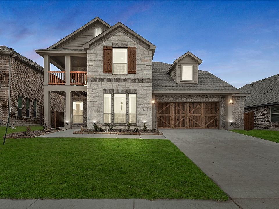 Picture-perfect new construction from Bloomfield with a balcony front exterior and a contemporary, open interior! This plan touches on traditional elements with formal spaces like a Study & Dining Room, but offers a contemporary common space that helps keep your household connected. Upstairs features a huge Game Room flex space with a narrow, theatre-style Media Room attached. The dreamy Deluxe Kitchen has quartz surfaces, oven & microwave built-in tower, and a glass electric range with a wood vent hood above. Every room has detailed features that make this home feel custom, whether it's the wood flooring in common areas, the wood-burning stone fireplace that reaches the ceiling, or the storage from a mudroom cabinet & extended primary WIC. Additional highlights include the separate vanities in the primary bath, an extended covered patio, and a 2.5-car garage with a stained wood garage door. Lot includes full sprinkler, sod and stained fence with metal posts. Tours available every day!