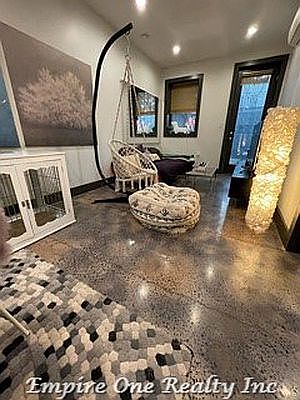 Extra large Duplex lots of windows exposed bricks Closets polished stone floors huge living room nice kitchen granite counter tops dishwasher stainless steel appliances 3 bathrooms with sinks washer dryer video intercom heating and cooling units Private garden