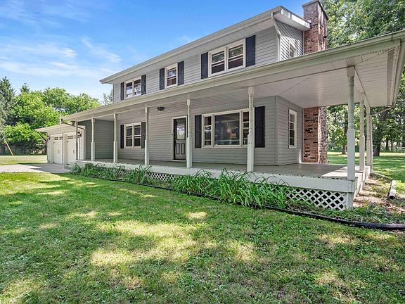 Visit your new home on an expansive 3 acre plot, completely fenced in. It boasts a large wrap-around porch, great for enjoying those summer mornings! Come walk inside and find yourself sitting in the living room that includes an all-brick fireplace, providing you warmth and comfort during those chilly winter nights! Your eat-in kitchen is equipped with stainless steel appliances, granite countertops, and plenty of cabinets for storage. Adjacent to the kitchen is a large great room, the perfect space for hosting gatherings around the holidays! Walking upstairs you will find 3 additional, generously sized bedrooms and a full bath. The primary bedroom has its' own full bath as well! Laundry room can be conveniently found upstairs which will save you many steps from going to the basement! Once you step inside you will realize you are already home, come make it yours forever!