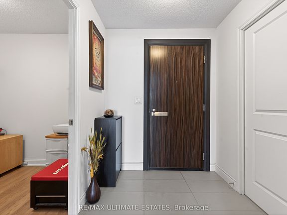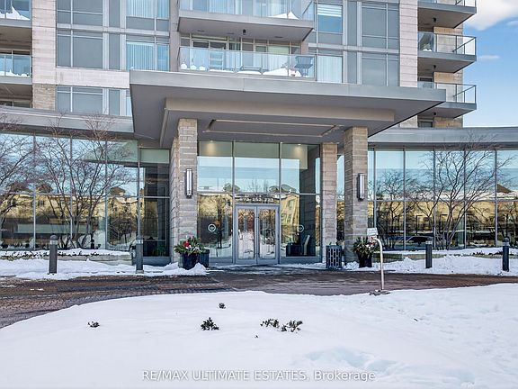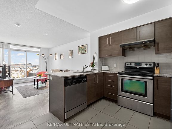 This exceptional residence offers unobstructed north and northeast views from a full-width balcony, with abundant natural light throughout the unit. The thoughtfully designed 1+1 layout features a spacious primary bedroom with a walk-in closet, along with a versatile den enclosed by French doors-ideal for a second bedroom or a home office. The open-concept kitchen is equipped with a breakfast bar, seamlessly connecting to the living space, while ensuite laundry adds everyday convenience. The unit includes one parking space and one storage locker. The building boasts an impressive array of amenities, including a swimming pool, fully equipped exercise centre, theatre room, card room, ping pong and billiards room, party room, guest suite, visitor parking, and 24/7 security with concierge service, as well as an on-site property management office. Beautifully landscaped grounds enhance the community, with a rear exit that opens directly into a park. Ideally located close to major highways, public transit, shopping, and dining, this property offers both comfort and outstanding accessibility.