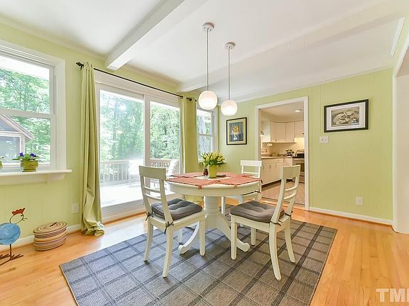 A home that makes you feel happy! This updated and well-maintained ranch is located on a large, private .46 acre lot less than 1.5 miles from the center of Chapel Hill. Sit on the back deck or screened gazebo and watch the deer or use the wired workshop to get busy on your next project. No carpet, beautiful hardwoods and stainless steel appliances. Home has 3 bedrooms plus an office that can be used as 4th bedroom. Walk to Flyleaf Books, The Root Cellar, Lucha Tigre, Umstead Park and Bolin Creek Trail.