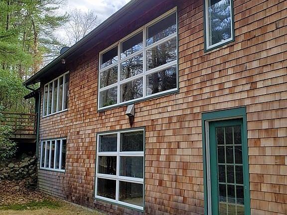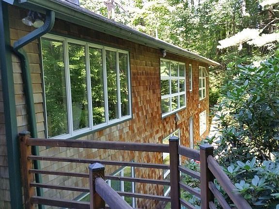 Special custom touches and charm are everywhere in this serene Asian/Craftsman influenced property. Set up on a slight knoll on 6+ acres with 1270+ feet of frontage, this private 3 bedroom 3 bath home is peaceful yet convenient to everything. Open concept kitchen features custom fir cabinetry, fire slate counters, a large island, and pantry. Warm up by the double sided fieldstone fireplace that anchors the kitchen, dining and living rooms. Expansive windows gaze out on a beautiful scenic view of the Roaring Brook. Living room has large custom bookshelves, french doors, and access to the large screen porch and Brazilian Walnut deck. Two bedrooms on main level with ample storage, including a master with en suite. Spectacular sunny finished lower level has a family/media room, office, bedroom & bath plus walk-out access to the brook. PV & hot water solar panels, 2 car attached garage with breezeway, private pond, and brand new 4 bedroom septic system just installed. Move-in ready!