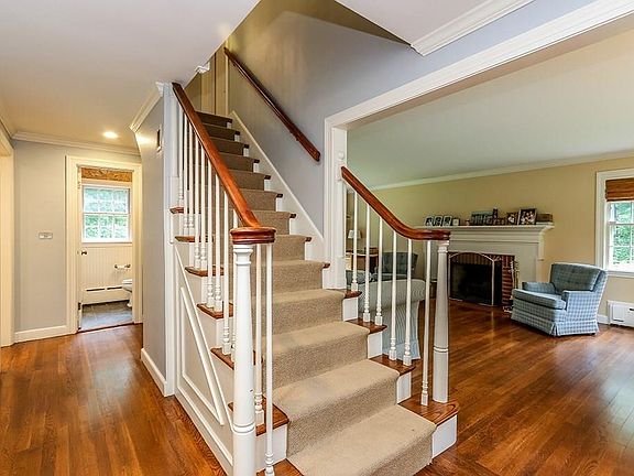 Move in ready! Lovely updated Colonial on 1+ acre of land on a quiet circle in a woodsy neighborhood of Prime Precinct 1. Sun filled house with first floor family room with coffered ceiling, mudroom with direct access to the 2-car garage, updated chef's kitchen that opens to the dining room, and a spacious living room with wood burning fireplace. Upstairs are two good-sized bedrooms that share a full bath. The Master Suite has its own full bath and walk-in closet. The lower level with walk out to yard includes a home office/game room with fireplace, laundry room, work-shop and cedar closet. Enjoy two terraces surrounded by level lawns, stone walls, trees, and wildlife. This serene location is convenient to commuter rail and highways, yet very close to the village center with boutique shops, independent movie cinema, restaurants, coffee shops, and yoga/Pilate studios. Also nearby - Wilson Mt. trails, kayak launch sites on Charles River, Art Center, Legacy Place. Offers by 6pm Tues. 9/15