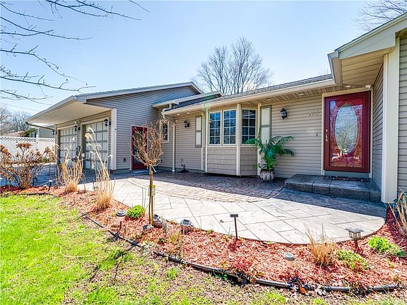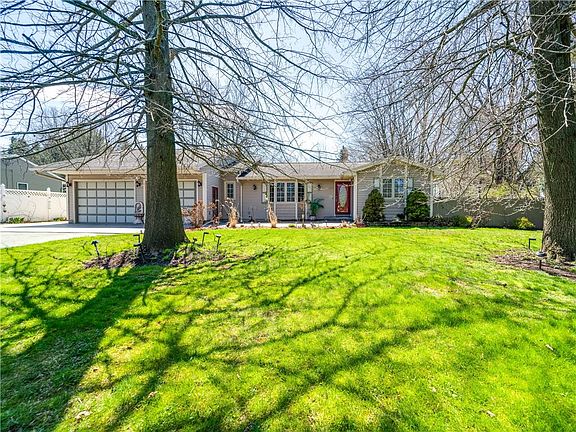 Sweeping Ranch in Greece with in-law, teen, or guest suite possibilities. 3 Bed/ 4 Full baths. This property offers Beautiful hard woods, clean baseboard heat, 4-car garage, and so much more. 2 kitchens on the first floor with a 3rd kitchenette in the fully finished basement. The cook will enjoy preparing and serving meals in the main kitchen open to dining and living room, Possible guest/ in-law or teen space offers private space, with large suite including Kitchen and sitting room. Custom details abound in this unique property. Gather with family and friends in the finished basement, offering extra sq. footage, and equipped with full bath and kitchenette. so many possibilities for use! Relax on the lovely patio in the private back yard, surrounded by nature featuring a charming pergola. Note: sq. ft. is incorrect on public record/ sq. ft measured for accuracy on 4.28.22/ Offers to be reviewed on Mon 5/9