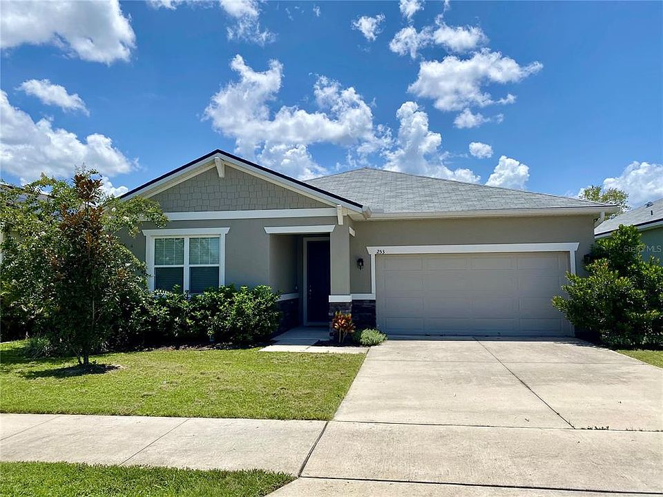 Practically Brand New!! Built in 2020. 3/2, BEAUTIFUL home located in the desirable community of Watercrest Estates! Immaculate and like-new home that features many upgrades, including; granite counters, gorgeous tile flooring throughout living spaces, all new ceiling fans. Split Bedroom layout. The kitchen is the heart of this home and features beautiful granite counters, a big island with breakfast bar and sink, stainless steel appliances, tiled backsplash, a closet pantry. The large master suite offers a walk-in closet, a walk-in shower and granite counters with dual sinks. Guest bathroom features a tub and a granite counter. Smart Garage Door. The home backs up to a wooded conservation area that can not be built on. The community of Watercrest Estates offers a community swimming pool, perfect for those warm FL summer days.