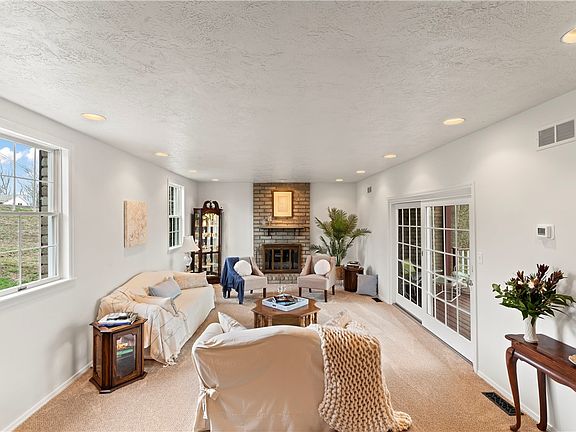 MOVE IN READY, brick colonial, nestled on over ½ acre, mins from shops and Rt19! This gorgeous, corner-lot property features NEW carpet, LVP flooring, FRESH paint, updated 1/2 bath, and tons of NATURAL LIGHT. Cozy up by the FIREPLACE in the spacious living rm or entertain guests in your formal dining rm. The refreshed Kitchen boasts plenty of SPACE as well as a breakfast bar adjoining the family rm. From the garage, you’ll find a convenient MUD ROOM that offers ample STORAGE. The master bed features DOUBLE CLOSETS and a refreshed ensuite bath. The finished bsmt W/full bath, provides ideal space for the kids to hang out, a home gym or even a 4th bedroom. Step outside onto the large partially covered DECK and PATIO. With the added bonus of ceiling fans and lights, you’ll be able to enjoy the space well into the evening. This home comes with a 1 year WARRANTY for the flooring, paint and bath updates. NEW FURNACE/AC 2022. Don’t miss out on the opportunity to make this beautiful home yours!