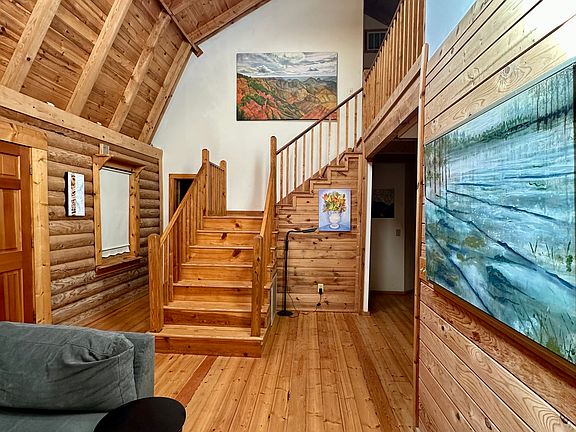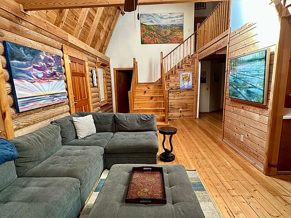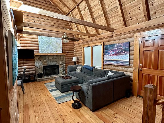 Private, peaceful, furnished serene log cabin on 5 wooded acres is ready for you! Enjoy the sounds of nature on your front porch. This spacious home has over 2100 square feet with the primary on main. In addition to the main living room there is also a den which can be used in a number of ways. Upstairs are three more bedroom areas and a bathroom. Flexible lease terms available. The home has a wheelchair ramp and roll in shower. Home is furnished and includes utilities. Furnished and includes utilities.