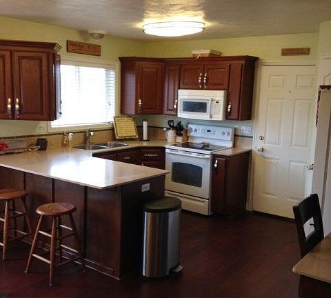 5-bed, 3-bath home in Rigby. Large corner lot. Fully fenced yard. Hardwood and tile flooring.