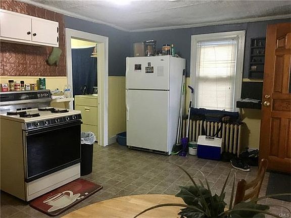 White St apartment set back off the road. Large eat-in-kitchen with new flooring, and washer/dryer. Bedrooms on upper level. 3rd bedroom is tandem bedroom, could also be used as an office, dressing room, or storage. Parking for 2 cars. Convenient to shopping and highway, Danbury train station is 1 mile, and the bus line runs/stops on White St.