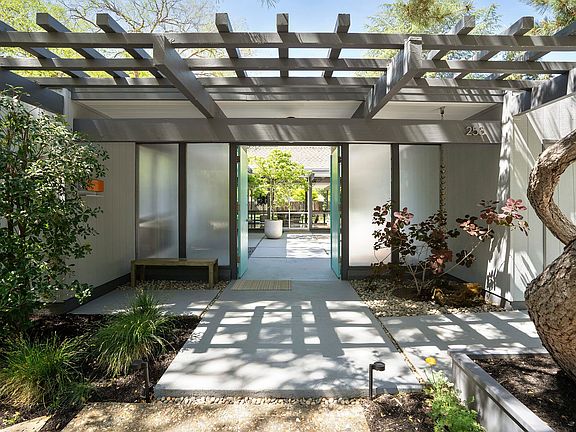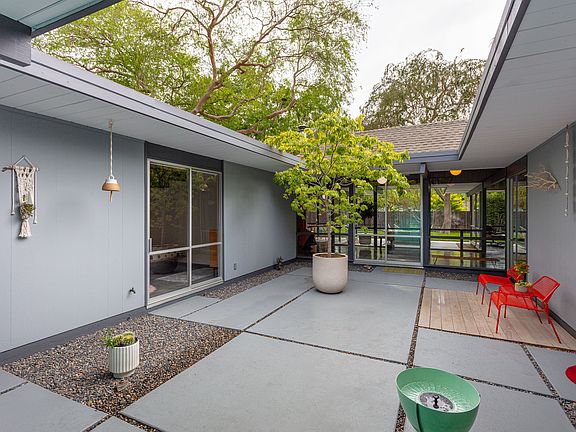 Your patience is about to be rewarded! Rarely available Super-Eichler in Walnut Creek's fabulous Northgate neighborhood. Designed by legendary mid-century modern architect Claude Oakland, the H is one of the most unique and cutting edge Eichler models ever built! It's also one of the largest Eichler homes, with a robust 2,435 sq ft per tax records, not including the massive open-air atrium with dramatic double door entry. Impressive and versatile single level layout with 4 ample sized bedrooms, 2 full & 1/2 remodeled bathrooms including a gorgeous split bath in the master with roman tub, separate dining room, loggia with Malm fireplace, living room with wood burning brick fireplace, polished concrete floors throughout, and more! All situated on a meticulous level 1/4 acre lot with new fencing, automated irrigation, courtyard with fire-pit, side-yard with patio, and a fully restored salt water gas heated pool!
