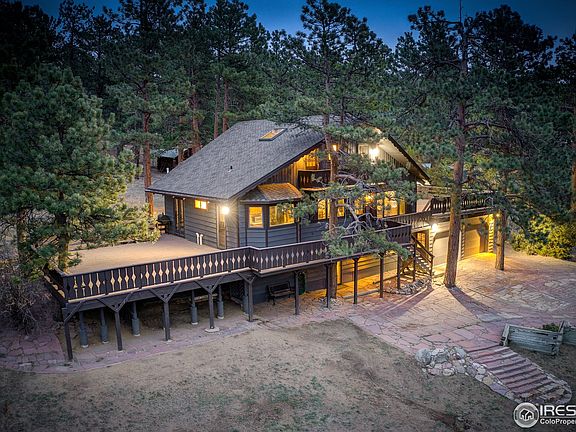 Charming mountain chalet. Live amongst the wildlife in this home with a massive, oversized wraparound deck, perfect to enjoy the tranquil mountain lifestyle. Nestled at the end of a long, stone driveway is a private, comfortable escape from city life, just a short commute away. Immediately upon entering, your eyes will be drawn to the marble tile. A cozy wood burning fireplace with brick face adorns the living room. Main level home office features built-ins and leads outside to one of three patios. Upstairs are two bedrooms adjoined by Jack and Jill bath and shared balcony. Both have vaulted, beamed ceilings and plenty of attic storage. Numerous possibilities for the lower level, featuring walk-out access and a non conforming bedroom. Tremendous, oversized 2 car garage and huge driveway offers plenty of parking. You will love the enchanting miner's cabin from the 1800s on the property, for a storage area or play house.