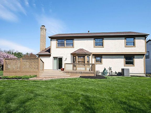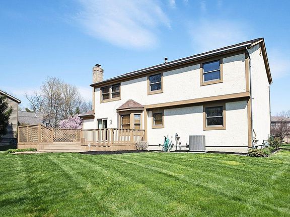 OUTSTANDING and spacious 2 story situated on a park-like, cul-de-sac lot in the back of the subdivision! Features all new carpet on the 1st 2 floors and fresh, neutral paint on the 1st 2 floors (other than closets). Large living room w/crown moldings. Beautiful dining room w/crown moldings, chair rail & new light fixture. Spacious family room w/brick fireplace and sliding door to a wonderful deck. Master bedroom w/vaulted ceiling & ceiling fan and bath w/new light fixture, double vanity, soaking tub, skylight & walk-in closet. Lower level features a rec room, plenty of storage space in the unfinished area and a newer furnace ('14).6 panel doors on the 1st floor. Side load 2 car garage. Concrete driveway. Convenient located near a park, Polaris shopping & restaurants, Rte 23 and more.