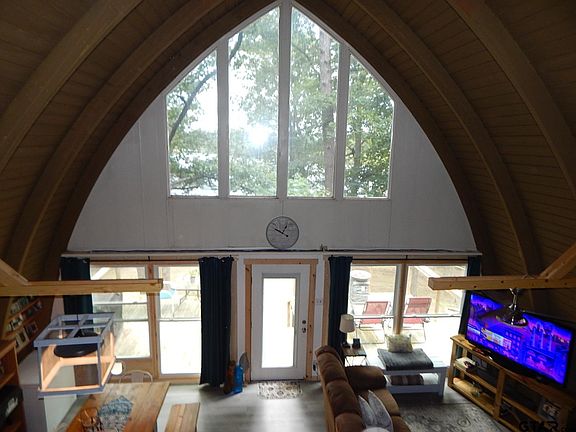 Gorgeous lake cottage outside of Gilmer on Raintree Lake. 1 + acre, two lots. Come enjoy the beautiful view from your deckoverlooking the lake. Lots of tree with plenty of shade. Plenty of wildlife and great fishing. Nice size front and back patio. Open"A" Frame design. Enter in with the bathroom washroom on the left and bedroom to the right. Central Heat and Air. Kitchen isopen to the rest of the house with Granite counter tops and Butcher block. Very rustic looking. Nice view of the lake fromkitchen, dining and living room. second bedroom is upstairs. Over 200 feet of lake front. call for an appointment. Perfect littlelake lodge or AIR BNB.
