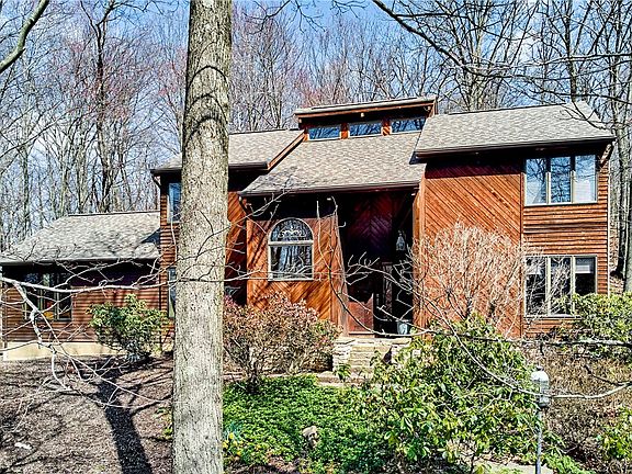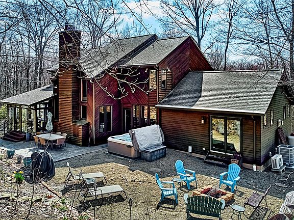 3 bedroom 2.5 bath home on 2.24 wooded acres with cedar construction offers a rustic charm. The main bedroom has plenty of natural light with a walk-in shower, double sink vanity & spacious closet in the primary bath. The eat-in kitchen, adorned with alderwood cabinets, granite countertops, appliances included and a warm glow of the hardwood floors. Dining room offers a refined space for formal gatherings. The adjacent living room offers vaulted ceiling crafted with reclaimed wood & wood-burning fireplace. The expansive family room, custom-built in 2017, vaulted ceilings, leathered granite countertops & custom built-in cabinets. The separate HVAC system ensures comfort year-round. elect heat with oil backup. Cozy den on main floor has a quiet retreat for work or relaxation. The new 3 season room is a perfect spot to enjoy beauty of the surrounding landscape. Spacious backyard provides ample privacy & room to unwind. New furnace & 1st floor laundry. Additional parking spaces if needed.