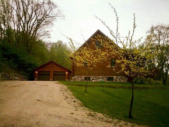 One of a kind! 21.32 acres on hard surface road close to Fort Dodge. Relax on the 7x40 open porch w/ stunning views of pasture, creek & woods, in this 2+ BR, 2.5 bath, open plan log ranch with 1,410 SF, cathedral ceilings, loft, stone gas fireplace in living room, kitchen has island, gas stove, refrigerator, dishwasher, disposal & sliding glass doors to 20x14 open porch/deck with additional 10x10 lower deck. 2 additional non-conforming BR's & family room in lower level remodeled in 2020 with new 6-panel solid pine doors, trim, paint & flooring. CA, breakers, 24x36 detached heated garage with 3 openers & additional shop area.