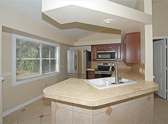 A great opportunity to own this beautiful and spacious home with 3 bedrooms, 2 bathroom,oversized 2 car garage with a long private asphalted driveway on the great high and dry lot.Enjoy country living close to the city with no housing association fees! Well cared front yard is fully fenced with lots of potential uses on the back- space for entertaining ,large space for pool ,tropical garden, outdoor fireplace, playground for kids & pets.Golden Gate Estates provides owners the freedom of parking your boat or RV while giving you privacy and no HOA restrictions yet you can still easily enjoy amenities Naples has to offer with only a short drive!Home features brand new roof, Updated HVAC system 3 yrs old, new wood kitchen cabinets, brand new stainless steel energy efficient appliances, tile flooring , baseboards,interior doors,large windows, newer well with water equipment,new interior/exterior paint, Both bathroom have an updated sink with shower / tub.The design offers vaulted ceilings in living room/dining room area with gorgeous triple windows in the front.The house is in immaculate condition ready for move in.Guest bedrooms are sizable with walk in closet space.Must see