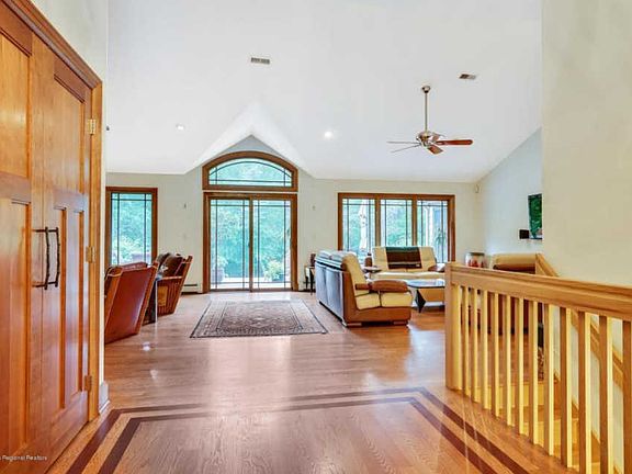 Private luxury estate, situated on a five acre lot with possibilities to subdivide, backing up to green acres. Custom craftsman raised ranch style featuring stone columns and an oversize wrap around porch. Quality finishes include hardwood floors throughout, cathedral ceilings, solid cherry moldings and floor to ceiling windows. Two sided fireplace connecting the dining and living room areas, kitchen with center island and professional appliances. Two suites on the main level offer mother-daughter possibilities. Unique potential for seclusion and within minutes to the GSP, downtown Sea Girt, Manasquan beaches and shore life.