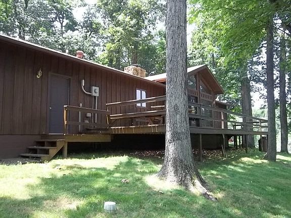 PROPERTY FOR THE OUTDOORS MAN / 20 ACRES / CONSTRUCTION IS WESTERN RED CEDAR / 3 BEDROOM / 2 FULL BATHS / HARDWOOD FLOORS / CATHEDRAL CEILINGS IN LIVING ROOM / BEAUTIFUL STONE FIREPLACE WITH PROPANE GAS LOGS / CROWN MOLDING / LIGHTED TRAIL TO DOCK AND A BEAUTIFUL LAKE WITH FOUNTAIN / HOME IS SURROUNDED BY MATURE TREES / 2 CAR ATTACHED - 4 CAR DETACHED DRIVE THRU GARAGE WITH STORAGE FOR ALL YOUR HUNTING GEAR / BEAUTIFUL SETTING