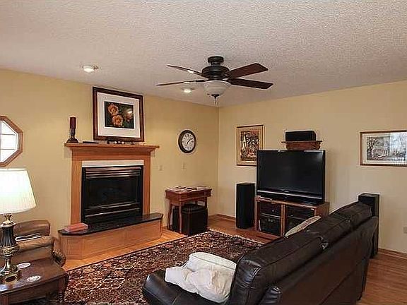 Step inside and fall in love with this contemporary 1.5 story with open vaulted ceiling in living area and open staircase to upper level. Inviting sitting area off the front door, gorgeous custom wood blinds, beautiful updated kitchen cabinetry with corian counter tops, separate cook top and double ovens. Family room with gas fireplace off kitchen and 3 seasons room off the rear to enjoy the wooded view. Lower level offers 2nd family room area with wet bar, walk out to patio and beautiful fenced in back yard. So many wonderful features, see it today!