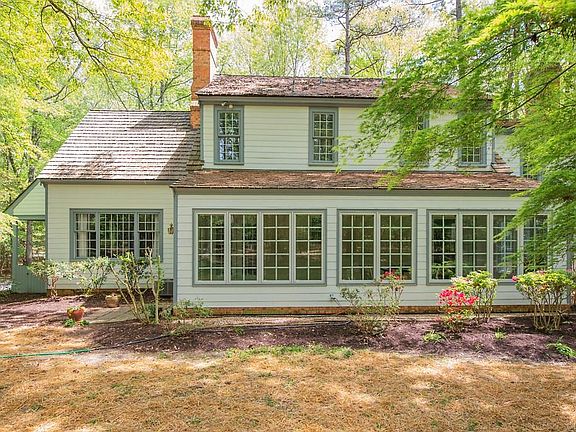 This Stuart Turner custom designed home is an architectural gem! As you flow through the rooms you will notice architectural details such as wainscoting, multi-piece crown, 4 fireplaces w/mantles made from reclaimed 100+ yr old warehouse beams, (Gas in kitchen & wood burning elsewhere), built-in shelves in library & the 100+ yr old reclaimed, five quarter heart pine hardwd flrs. Its Williamsburg charm is felt throughout this stunning home. Fresh paint throughout. New Plush Carpet. Updated kitchen & BAs. Some new lighting. Living space is abundant: sizable liv rm, gorgeous din rm, spacious fam rm, library (that can be closed off for privacy), & sun rm. The sun rm across the back of the home provides an enchanting space to view the greenery outdoors & the water fall in the Koi pond. The patio provides a nice outdoor grilling space. The Master Suite provides a wonderful escape from the day. The Master BA offers a soaking tub & sep shower. The 3 addit'l bedrms w/new carpet have sizable closets (2 have access to a large secret storage area). The upstairs laundry offers a cab & shelves for storage too. 2-car garage w/auto door opener. Roof 2004, Gas Furnace 2013, downstrs AC unit 2019.