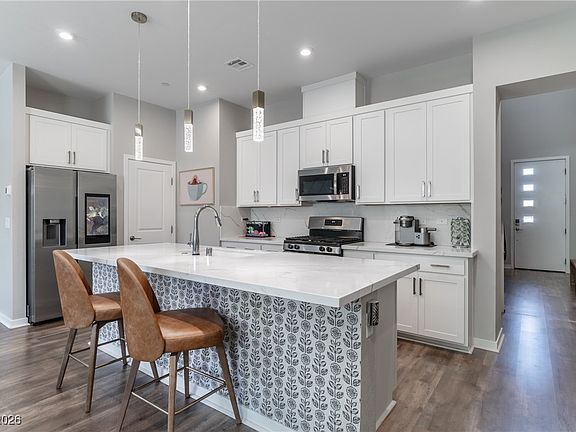 Step into style and comfort with this stunning 2-bedroom, 2.5bath townhome PLUS loft, located in a brand-new private community inside beautiful Inspirada. Thoughtfully designed with high-end upgrades throughout, this home features luxury vinyl plank flooring, quartz countertops, and custom lighting in every room. The open-concept layout is complemented by designer touches that make the home feel like it’s straight out of a magazine. The spacious loft adds flexibility for an office, gym, or second living area. Enjoy year-round outdoor living in the beautifully upgraded backyard complete with synthetic grass, a custom seating area, and space to entertain. Ceiling fans and modern light fixtures have been added to every room for ultimate comfort and style. Community amenities include a private park, sparkling pool, and a dedicated pet park—perfect for your furry friends. This is a rare opportunity to own a showpiece townhome in a sought-after, residents-only neighborhood. Don’t miss it!