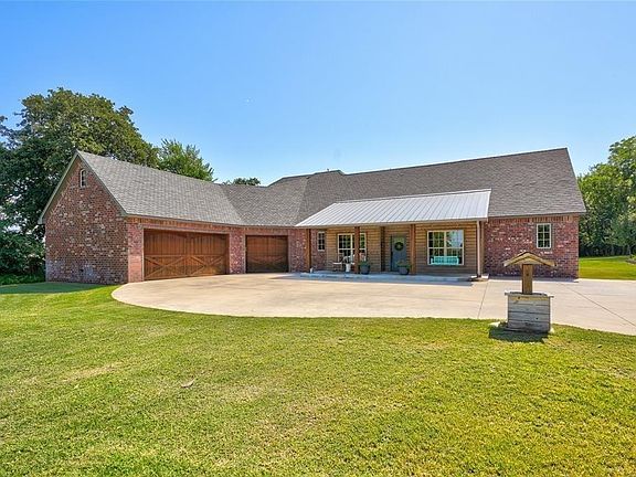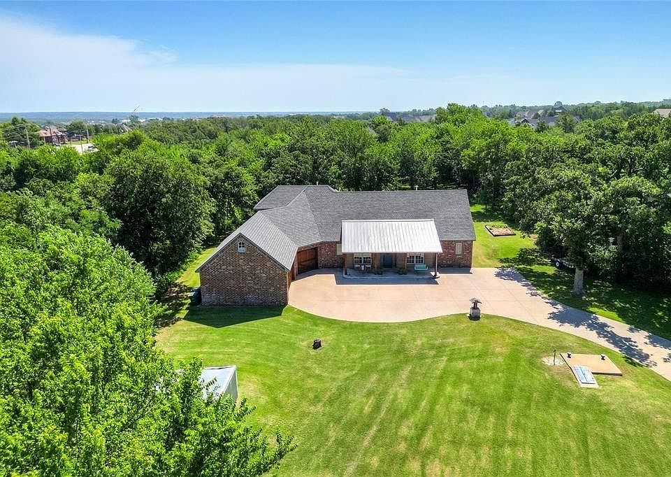 LOCATION, LOCATION, LOCATION! Welcome to your dream retreat nestled on 2.34 serene WOODED ACRES right in the middle of Edmond. This custom-built home epitomizes quality craftsmanship and modern comfort. The interior features stained concrete and wood floors, creating a warm and inviting ambiance throughout. Designed with energy efficiency in mind, this home boasts spray foam insulation, 2X6 exterior walls & a tankless hot water system, ensuring comfort while minimizing utility costs. The thoughtful layout includes a spacious living area with a cozy wood burning stove, a gourmet kitchen adorned with top-of-the-line appliances, and a stylish dining area perfect for hosting intimate gatherings or large dinner parties. Retreat to the generous master suite, a true haven of relaxation. The ensuite bathroom offers a spa-like experience with its luxurious fixtures, soaking tub, and separate walk-in shower. Additional bedrooms provide ample space for family or guests, each offering its own unique charm and comfort. Upstairs features a spacious bonus room w/separate heat & air & room for expansion in attic which has plumbing connections. Discover the convenience of a huge oversized 3-car garage, providing ample storage for vehicles, tools, & recreational equipment. The oversized walk-in attic offers even more storage options, allowing you to keep your living spaces clutter-free & organized. It also offers room for additional expansion. Step outside onto the large back patio & breathe in the tranquility of nature. Close to amenities (including the brand new Crest grocery, Starbucks and Showbiz Cinema), schools, and major thoroughfares, the location provides easy access to the best that the area has to offer while maintaining a sense of seclusion. With its quality construction, modern features, and idyllic setting, this custom-built home on 2.34 wooded acres is an absolute gem waiting to be cherished by its fortunate new owners.