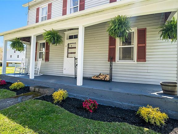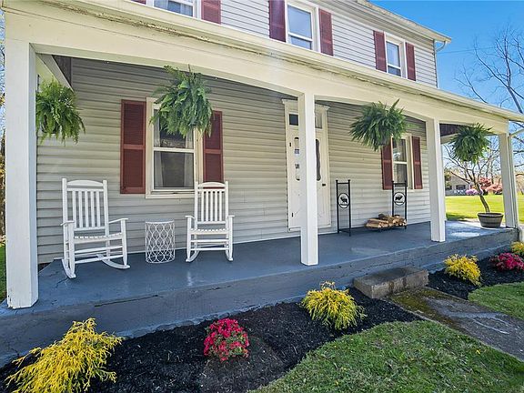 Offering the best of both worlds, this stunning 3 bed, 1.5 bath farmhouse is situated on over an acre of serene and peaceful land while remaining close to necessities. Prepare to be charmed by the large covered porch, overlooking panoramic views. Through the front door, you'll be invited into the living room with rustic farmhouse touches, featuring a nook & wood burning stove for your relaxation. Spend time with guests in the bright & airy family room- a perfect space for hosting events! Showcase your cooking skills in the kitchen, embellished with exposed beams, SS appliances and apron front farm sink. A half bath with laundry area complete the main level. Up the stairs, you'll discover 2 spacious bedrooms with a large walk-in closet each, as well as a third bedroom with closet storage. A hall walk-in closet and full bath complete the upper level. With attic and basement storage, 1.18 acres of land, and private yet convenient location- this home will not last long! Located within minutes from Market Street, Grocery Stores, Eateries & so much more!