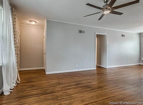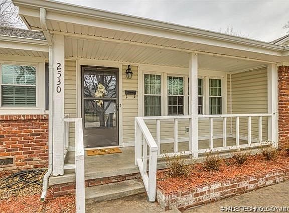 Back on Market - No fault of Seller!! This beautifully maintained 1950's home sits on large lot with beautiful mature trees, a covered front porch, 3 bdrms/1.5 bths. The converted garage space could be used as an office/4th bdrm or 2nd living area. The spacious back yard has full privacy fence and in-ground storm shelter, kitchen, living room, dining room, and interior laundry room. All appliances stay. This hidden gem of a neighborhood is only a short walk to Manion Park, which has several playgrounds, walking trail, tennis courts and more. This is a beautiful, quiet and well maintained neighborhood. Location is convenient to I-44 as well as to Mid-town and South Tulsa. Seller prefers to sell the home "as is".