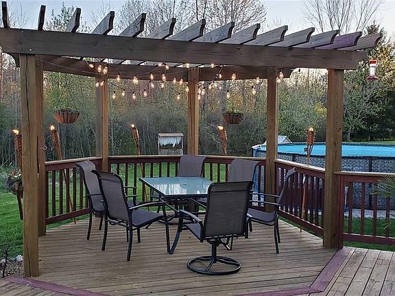 Welcome home to this beautiful 3 bedroom 2 bath ranch. Property sits on almost 3 acres. Enter into the foyer that has a door which leads to the 2 car attached garage. Spacious living room with a wood burning stove, recessed lighting, and sliding doors that lead to the backyard. Kitchen has hardwood floors and offers ample cabinetry and counter space, pantry, and adjoining dining area. All bedrooms are carpeted with overhead lighting. Master bedroom has tons of natural light, walk in closet, and ensuite bathroom with a double vanity. Huge backyard with a wooden deck and above ground pool that would be great for entertaining. This home will not last long. Notice for all showings and inspections: audio and video recording in effect.