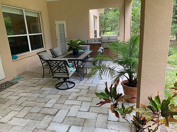 3443 sq foot on 2 1/2 acres… 550 sq foot bonus room… 750 sq foot covered porch with outdoor stainless kitchen and over 5200 sq feet under roof…2 fire places one is two sided between family room and living room and three sided in master bedroom….tile and wood everywhere.