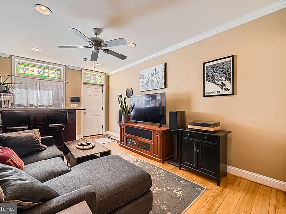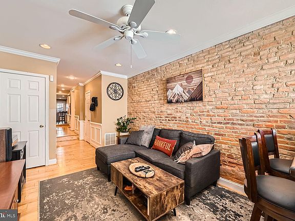Welcome to this beautifully updated rowhome in the heart of Canton, Baltimore! This charming home seamlessly blends historic character with modern upgrades. Enter to find a spacious family room with exposed brick and recessed lighting, creating a warm and inviting atmosphere. The kitchen is designed for both style and functionality, featuring granite countertops, stainless steel appliances, a gas range, a built-in microwave, and bar seating. Natural light pours into the space, and a rear door leads to the back patio, perfect for outdoor enjoyment. The main level is rich in architectural details, featuring chair railing and box moldings, adding a touch of sophistication, while an updated half bath with a pedestal sink provides extra convenience. Beautiful hardwood floors flow seamlessly throughout the main level, adding warmth and elegance. The primary bedroom boasts a vaulted ceiling, recessed lighting, and an updated en suite bath featuring pocket doors, a tile floor, a tiled shower, a linen closet, and a luxurious soaking tub. The second bedroom offers recessed lighting, and stunning exposed brick, with direct access to the rear deck that leads up to the rooftop deck, providing breathtaking city views. An additional updated hallway bath includes pocket doors, a stand-up tiled shower, and tile flooring. Outdoor living is a highlight of this home, with an expansive rooftop deck that offers the perfect spaces for entertaining or relaxing while enjoying panoramic city views. The back patio provides additional space for grilling and outdoor gatherings. Located in a prime Canton location, this home is within walking distance to Canton Square, Patterson Park, local restaurants, and shopping, with easy access to major highways and public transportation. Don’t miss your chance to own this stylish and well-appointed home in one of Baltimore’s most sought-after neighborhoods. Welcome Home!