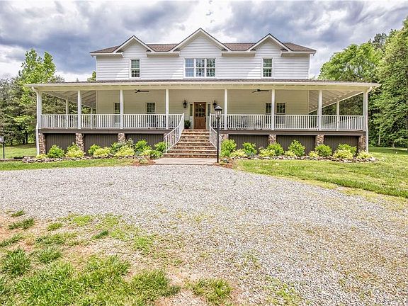Amazing 3500 sq ft home on 12.8 acres in eastern Powhatan. This custom-built beauty offers you total privacy. Pass your own pond with a dock, drive up the circular driveway, or go straight to the newly paved driveway to the oversized 2-car side-entrance garage! Enjoy an 8-ft-wide wrap around porch built with maintenance-free Trex boards. Enter the two-story foyer and peek at the family room with hardwood floors and a beautiful stone fireplace. Transition to a redesigned kitchen, featuring premium custom cabinetry, stone countertops, and new premium appliances. The first-floor owner' suite is filled with natural sunlight and features his/her walk-in closet and a fully remodeled bathroom with both sunken tub and walk-in shower, all with tasteful finishes. Upstairs are three additional spacious bedrooms with a Jack-and-Jill share for two of them. The large bonus room was converted into a 4th bedroom, big enough to host triplets! Enjoy the outdoors: eggs from your own super cute chicken coop and fresh veggies from your garden. Catch-and release in your pond or relax by the outdoor fireplace. This home will undoubtedly make an impact on anyone who sees it! Love at first sight. Hurry!