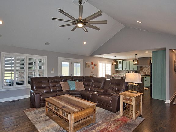After a meal, unwind on the screened-in porch, where a gas fireplace and mounted TV create a cozy retreat. Prefer to relax outdoors? Slip into the hot tub and take in serene views of the mountains and rolling farmland beyond.