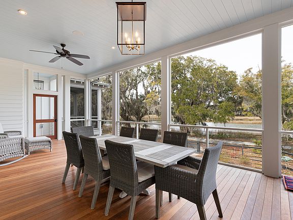 Perfectly situated along the edge of Cole Creek among the moss-draped oaks at Kiawah River, a special opportunity for move-in-ready, waterfront living awaits. Every facet of 2530 Helmsman Road has been meticulously designed to take full advantage of this large, waterfront homesite and spectacular views. A 40' x 15' rear screened porch provides abundant entertaining space and a tranquil perch for watching dolphins strand feed and Roseate Spoonbills, herons and egrets wade through the tidal creek. Oversized sliding doors seamlessly invite the outdoors in as you step into a sun filled living room, open to the spacious kitchen with scullery, an epicurean's dream. Elegant light fixtures, custom overlay cabinets and panel covered appliances elevate the sophisticated, coastal space.The main living floor offers two en-suite bedrooms, the Primary bedroom with a private porch and equally beautiful views of the creek. The second floor offers two additional bedroom suites and a flex room that makes the perfect media room, office, art or exercise studio. Upgraded features include Artisan Hardie siding, standing seam metal roof, Ipe decking, Sapele Mahogany garage doors, entry doors and shutters, two-stop elevator, Sonos speakers and receivers, custom closets, 5" quarter-sawn heart pine floors, a whole-house generator with surge protection, Andersen 400 series impact rated windows, and a dehumidified, plexi-glass enclosed ground floor with epoxy flooring. In the heart of the Jack Island neighborhood at Kiawah River, 2530 Helmsman is conveniently located to the endless array of outdoor adventures and luxury amenities. Walk out the backdoor to take advantage of the 18+ mile network of waterfront and wooded trails, meandering along ponds boasting unparalleled fishing, and a vibrant waterfront with panoramic views of Haulover Creek and the Kiawah River. Among the luxury amenities you will find the waterfront Spring House swim and fitness facility, Coastal Expeditions' outfitter, community dock and boat launch, Kiawah River Farm with fresh produce, eggs and goat dairy, and Farmstead Park with pickleball and tennis courts, a dog park and state of the art children's playground. Opening this summer, adjacent to the Spring House, The Dunlin, Auberge Resorts Collection, is bringing a 72-room boutique inn, waterfront restaurant, spa and more. Located 20 miles from historic Charleston, Kiawah River is Charleston's first Agrihood, situated on 2,000 coastal acres, encompassing over 20 miles of shoreline, a 100-acre working farm and abundant communal green space.
