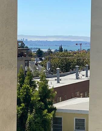 Lovely quiet apartment building. Balconies with patio doors. Views of San Francisco Bay, 4 blocks to UC Berkeley, extremely clean and well maintained, locked gate, locked parking garage. Mirrored closet doors, granite and tile in kitchen, new double windows and patio door. Separate dining room. Elevator.