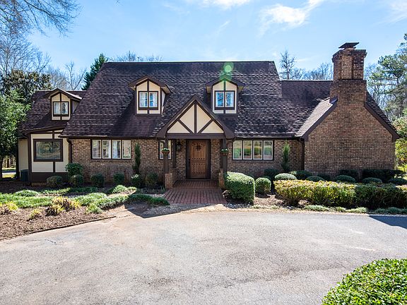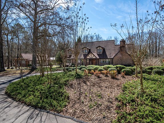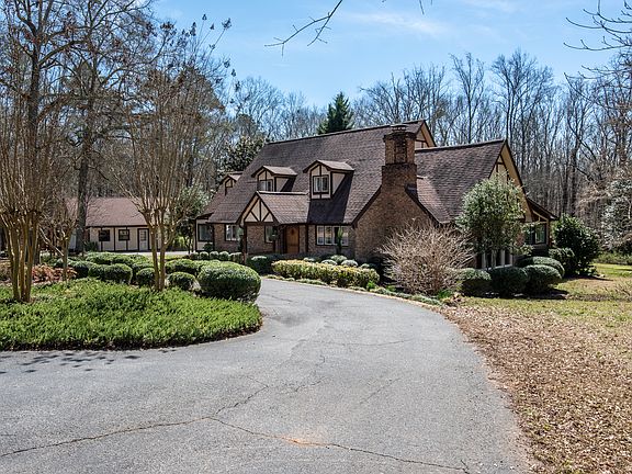 This stunning property is the perfect marriage of old world charm and modern convenience. Sitting at the end of a long, gated driveway is a thoughtfully renovated Tudor style home complete with half-timber details, dormer windows and a stately wooden door with wrought iron accents. Stepping inside, you'll find all the expected character and more. Refinished original hardwood floors in the foyer lead to the study/library with fabulous built-in book cases, down the hall, passing a stairwell with unique newel post and into the living room and kitchen. The living room is like something out of a fairlytale with a large stone fireplace as its focal point that climbs up the wall meeting the vaulted ceiling with exposed rough-hewn wood beams.The kitchen, which is partially open to the living room has custom cabinetry, tile back splash, brick floors, small wood-burning stove (not the cooking kind) and an island with a large brushed brass hood above. Off the kitchen is a formal dining room that has enough windows and natural light to be considered a sun room too. The first floor also features a large master with en suite with includes a clawfoot tub and new walk-in, tiled shower and additional bedroom and hall bath. On the second floor are three more bedrooms that have that cottage-like feel with ceilings that follow the roof's pitch, and a jack and jill bath that also opens to the hallway. The sellers recently replaced all the plumbing, simply for an update AND put in two new Trane HVAC units! As if the house itself wasn't enough to entice you, it sits on 12.5 acres with open fields, a small pond and creek, complete with wooden bridge, a detached two-car garage and large storage building. This property has everything you want and things you didn't even realize you needed!