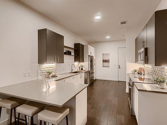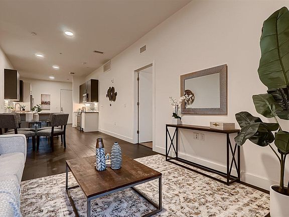 Apartment with 1 large bedroom, 1 bathroom, a small study area, a balcony adjacent to the living room overlooking Lawrence Street, a private storage unit right next to the apartment for easy access, and one garage spot. This 960 square-foot unit has access to shared common areas, including 3 grills, 2 gas fire pits, and a fenced-in community courtyard. Located in the River North (RiNo) Art District, this unit is in walking distance from craft distillers, brewers, and winemakers, unique shops, small-batch coffee roasters, and a diverse bar and restaurant scene. At the same time, the unit is tucked away enough to maintain a neighborhood feel. First month's rent and one month's rent as a security deposit are due at lease signing. Background check and credit report are required. Pets are fine but smoking in the unit is prohibited. Landlord will provide references from past renters if requested. Utilities are included in the monthly rent.
